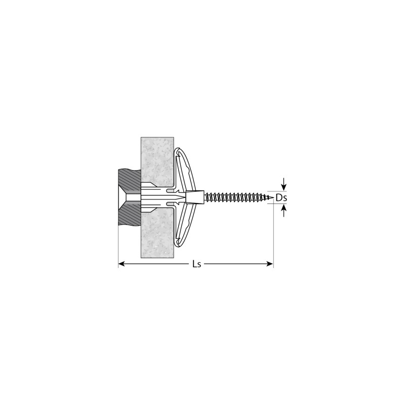 - При установке дюбель раскрывается в виде зонта с обратной стороны листового материала, создавая надежное соединение.