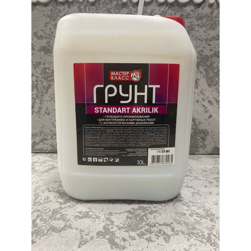 Теги: Грунтовка глубокого проникновения Мастер Класс Стандарт Акриловый 10 л, Мастер-Класс, Сухие смеси и грунтовки
