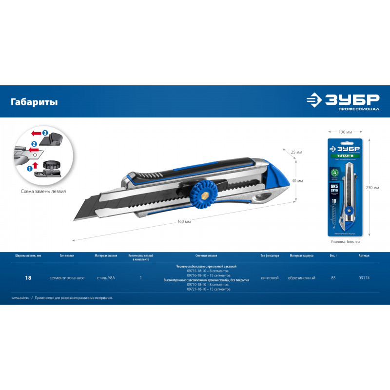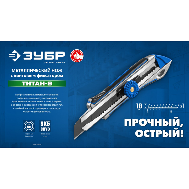 Теги: Металлический обрезиненный нож с винтовым фиксатором ЗУБР Профессионал Титан-В 18 мм 09174, Зубр, Ножи, лезвия (малярные, металлические для НП)