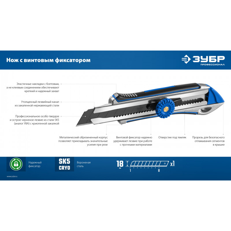 - -Винтовой фиксатор надежно фиксирует лезвие при работе с большими усилиями,