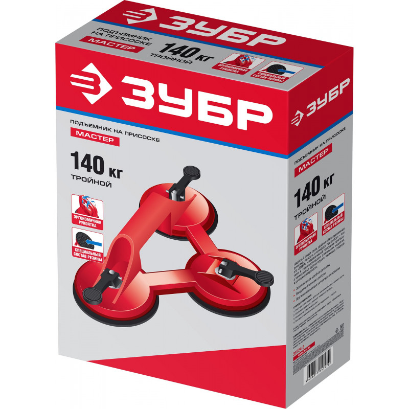 Стеклодомкрат ЗУБР пластмассовый, тройной, 140кг 33724-3 (Присоска)